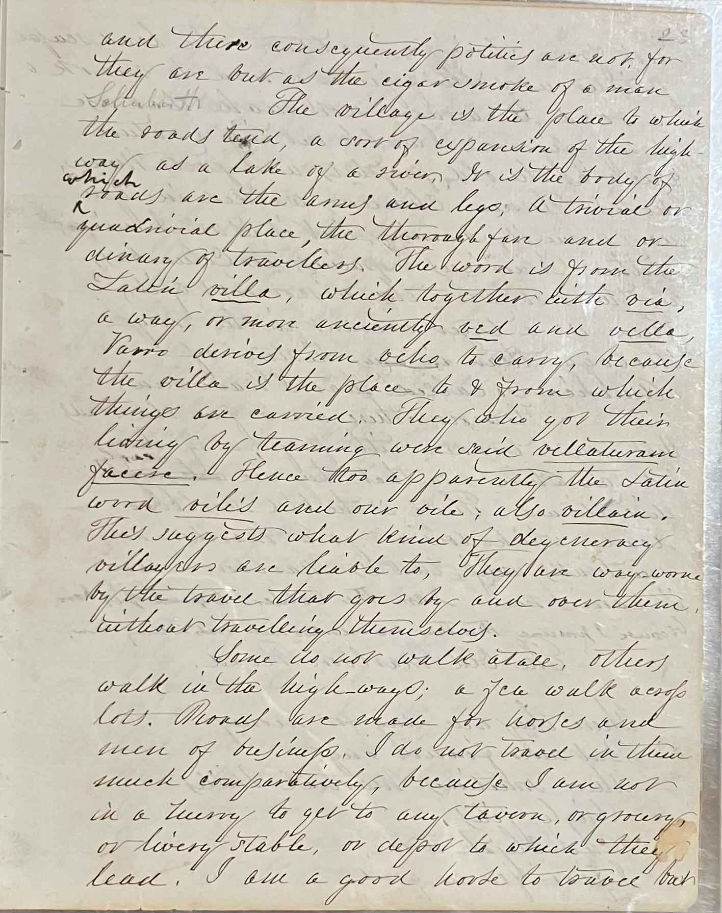 Manuscript of “Walking,” published in Atlantic Monthly for June 1862 (v. 9, no. 56) and later in the collection, Excursions (first published in Boston by Ticknor and Fields, October 1863). The manuscript contains numerous deletions and emendations by Thoreau; portions of it are in the hand of Thoreau’s sister Sophia.