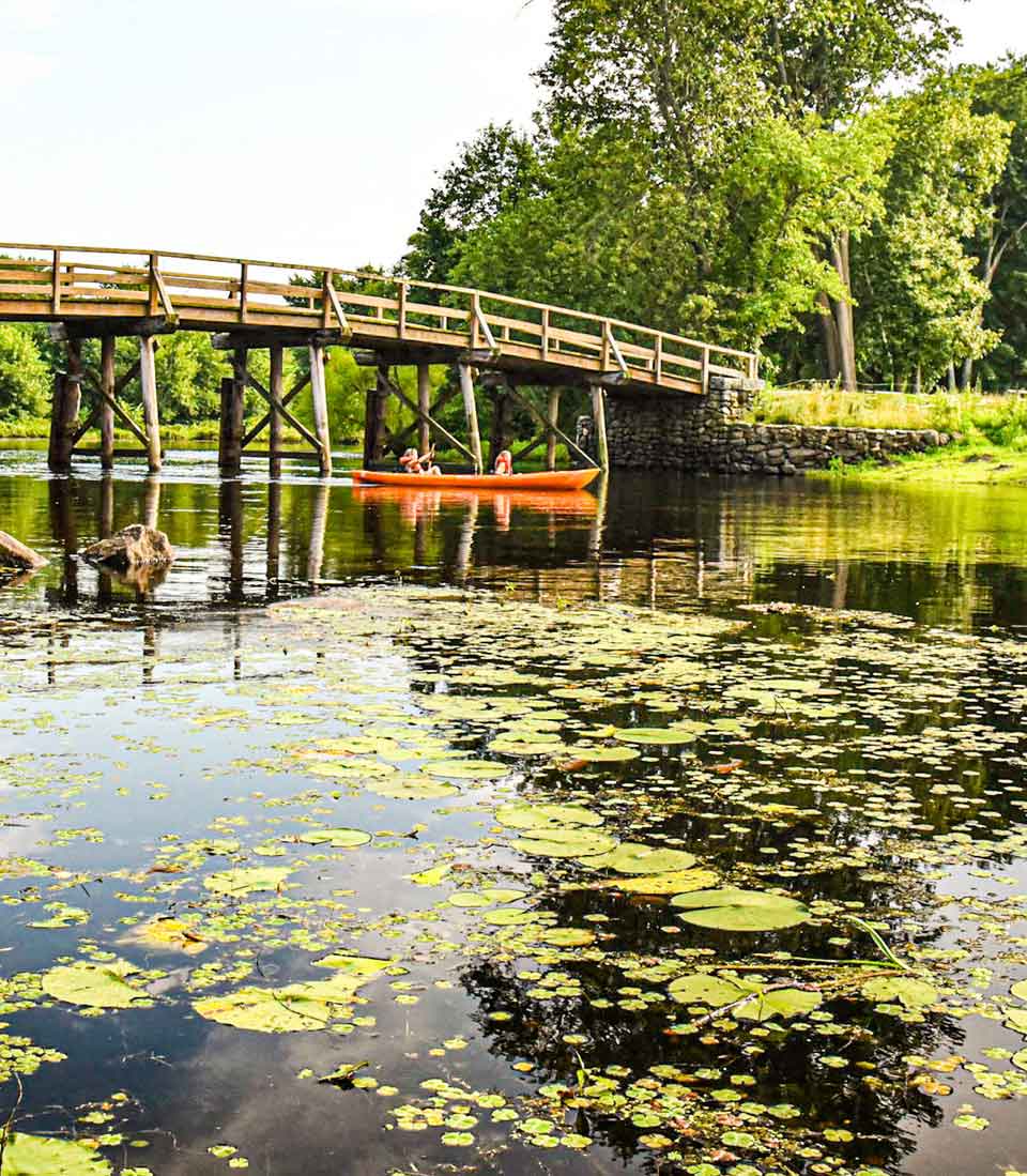 Each of our area’s rivers is distinctly different. The Sudbury River is slow-moving and more open with Fairhaven Bay opening up from the river as if entering a pond with an island and a stone boat house on the shore. The Assabet River feels more intimate with its narrow and meandering flow. The Concord River is a mix of both and provides more places to go ashore and explore, including the North Bridge, Great Meadows, and October Farm.