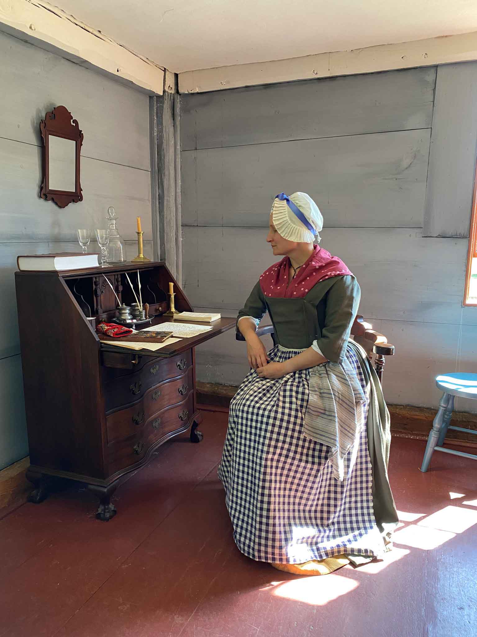 “Concord was always such a mythical place to me,” she said. And here she was, about to take part in the Patriots’ Day parade with the Middlesex County Volunteers! It wasn’t long before she got involved with Revolutionary War reenactment groups, and she was soon volunteering at Minute Man National Historical Park. It’s safe to say that Patriots’ Day has become one of her favorite days; she still marches in the parade with the Middlesex County Volunteers and takes part in living history programs with Minute Man National Historical Park.