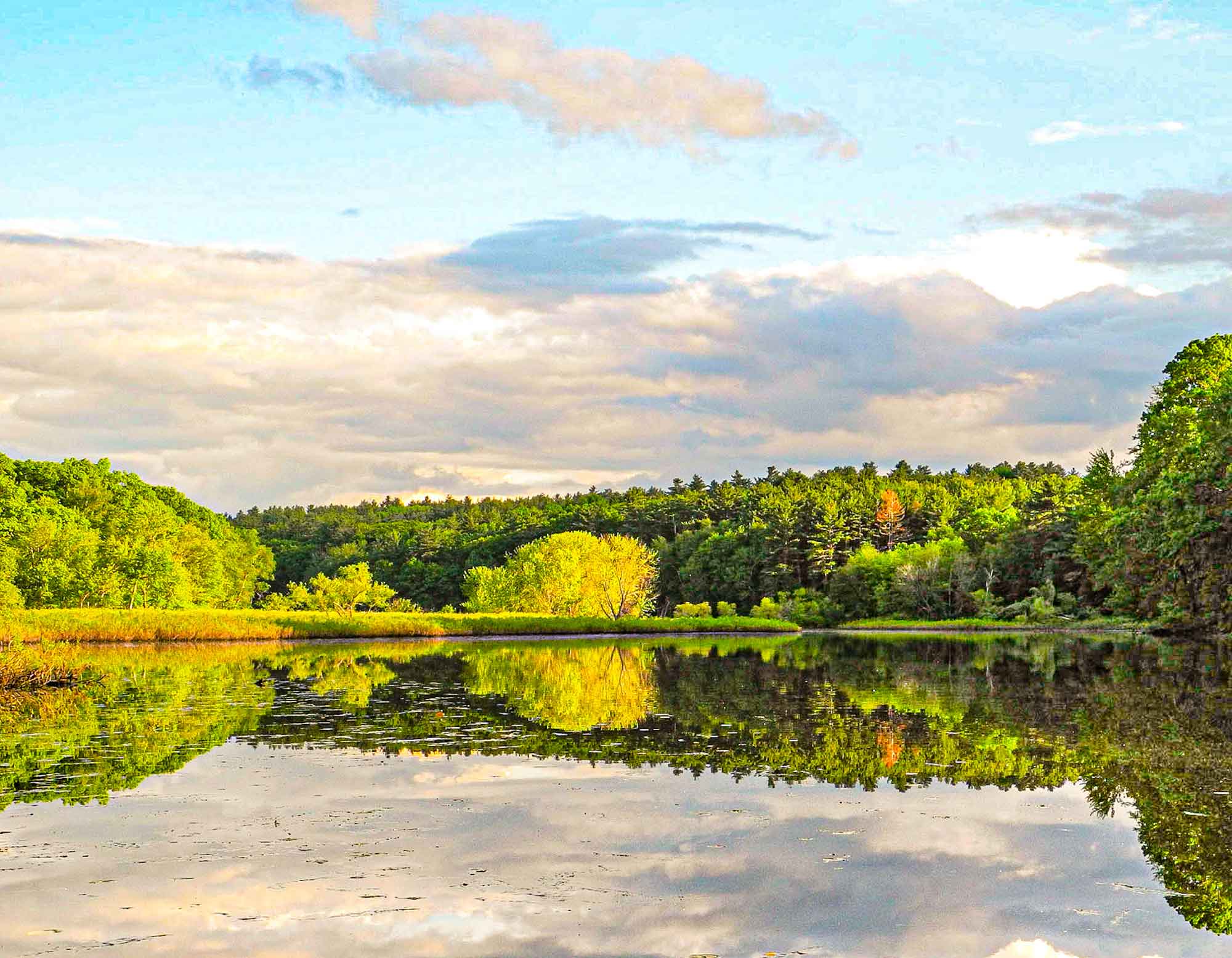 The soft green colors of spring on the river.