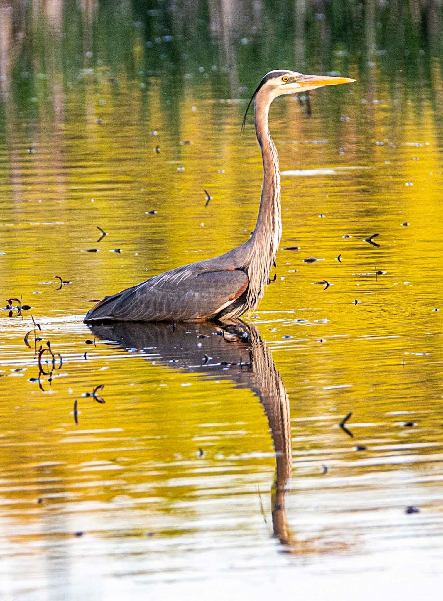 The Great Blue Heron in a morning spring glow.