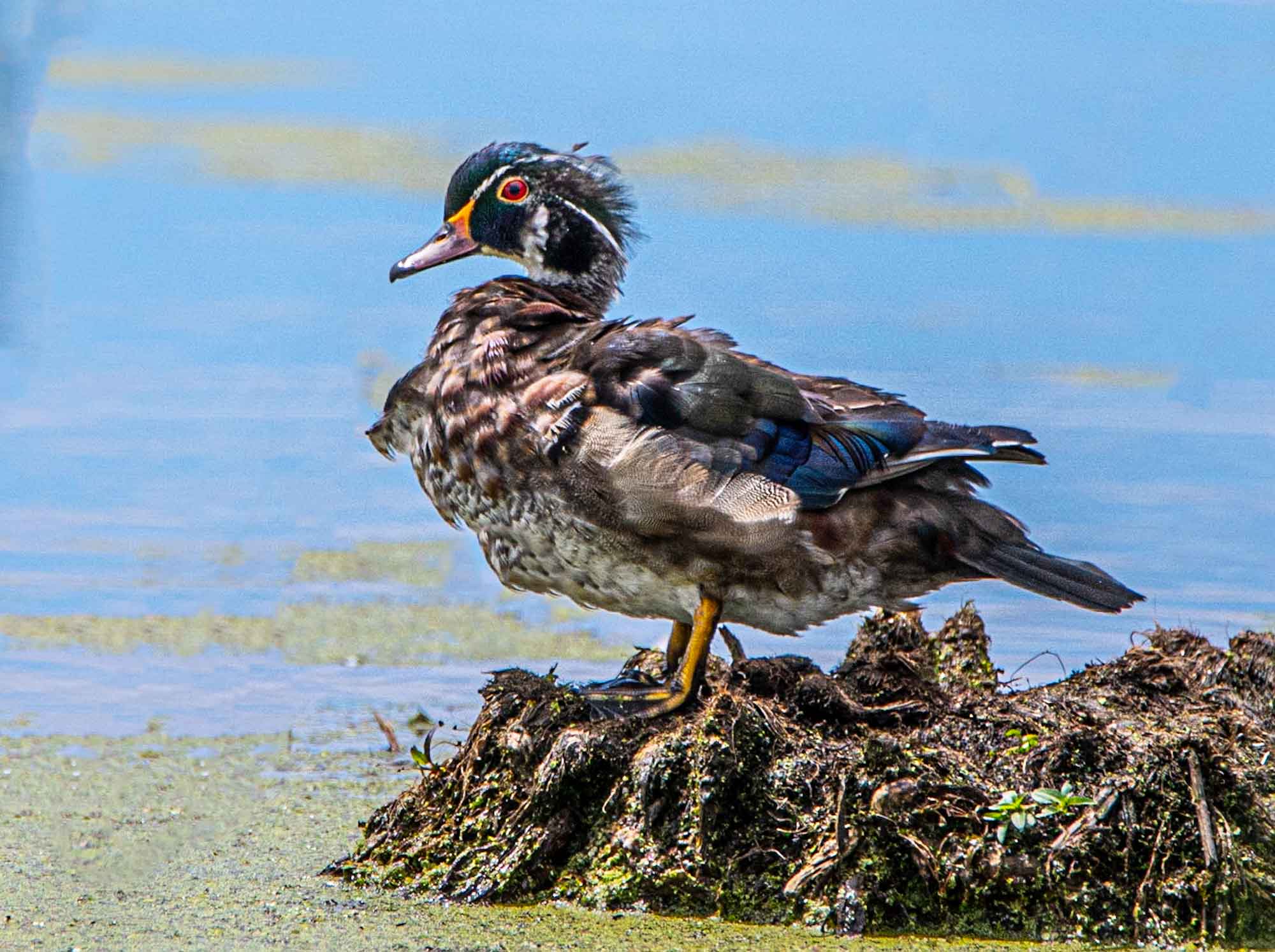 This disheveled Wood Duck is getting ready to court a female. Wish him luck!