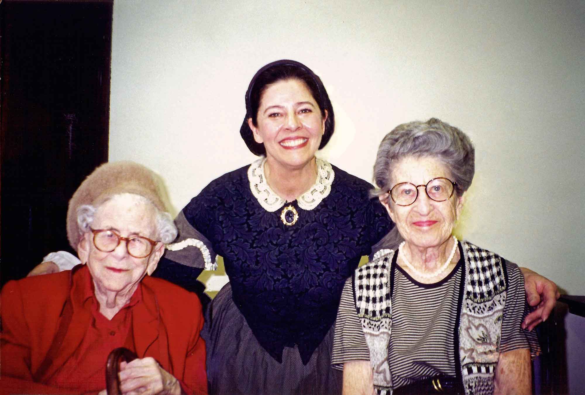 Leona Rostenberg, Jan Turnquist (as Louisa May Alcott), and Madeleine Stern