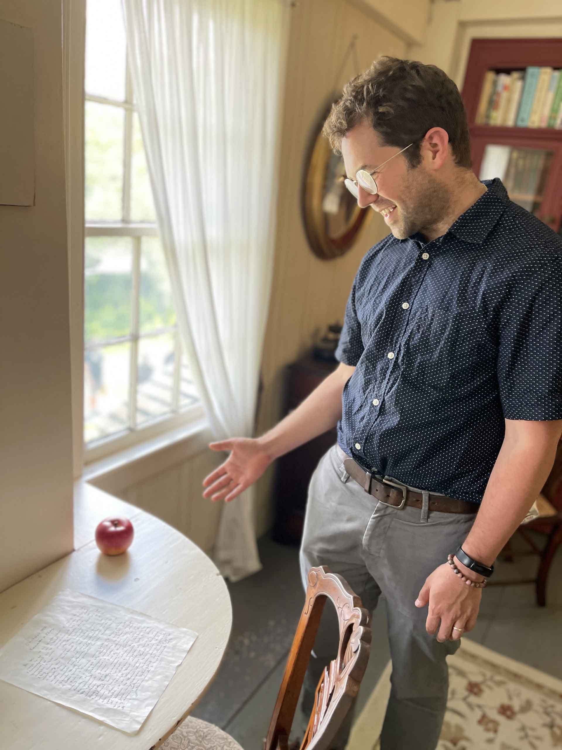 Max Chapnick at Louisa May Alcott’s desk
