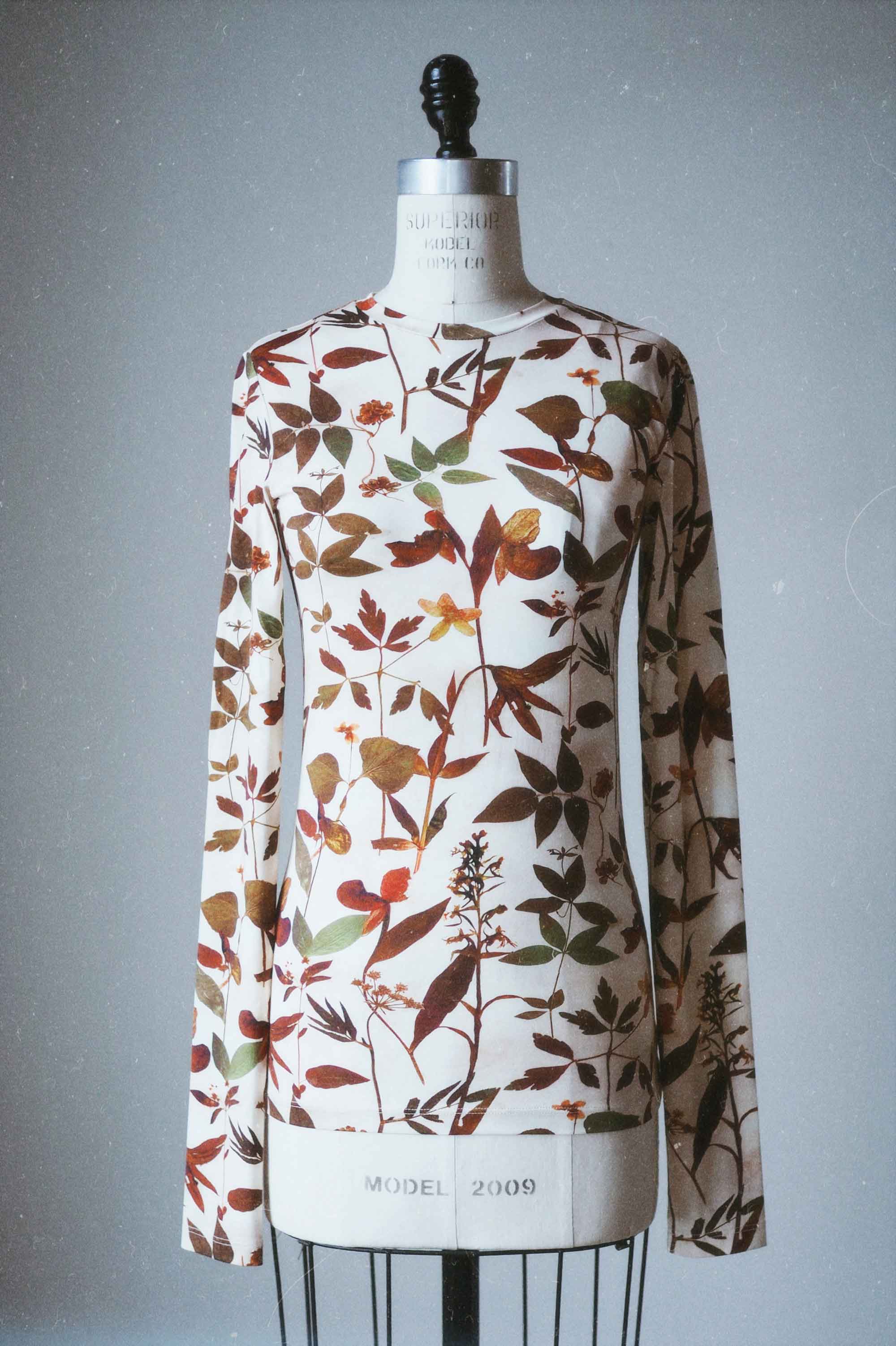 Inspired by her botanical pressings, Gary created stunning designs called Botanical Dark and Botanical Light. “I wanted to show the shadow side of classification. The hooded cloaks are not intended to hide,” said Gary, “but to create intrigue.”