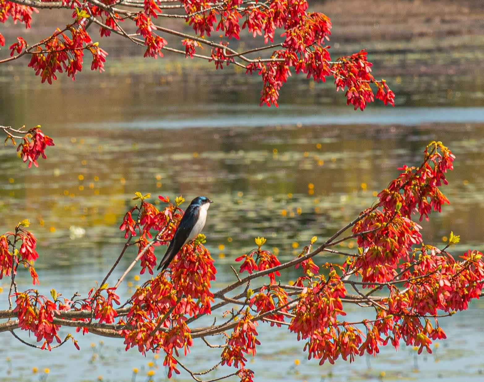 Birds, like this tree swallow, return to Concord from the south and new animal life and plant life spring forth.
