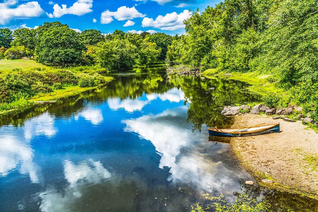 The Assabet River gets its name from the Algonquin word referring to the reeds along the banks. The Native American name for this stretch of the Sudbury and Concord Rivers was Musketaquid, which roughly translates to “grassy knoll.” This riverine great meadow stretched over 20 miles and supported early farming towns. The rivers were well known for the plentiful fish, especially river herring and shad that migrated up from the ocean. The rivers were dammed starting in the early industrial revolution, which ended the annual fish migration. The 29 miles of federally designated “Wild and Scenic Rivers” contain no dams and are protected for their outstanding values.