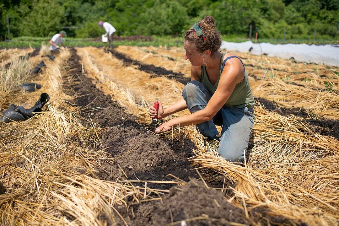 | Courtesy of Gaining GroundFarm Manager Anna Kelchlin oversees the entire farm, ensuring crops are rotated to balance nutrient uptake. She notes that tomatoes and peppers are heavy feeders. Lettuce, however, does not take up as many nutrients, partly because this crop is not in the ground as long as some other vegetables. She balances soil health by rotating crops and using organic fertilizers such as kelp meal, feather meal, and biochar. She orchestrates different amounts of additives based on soil need. Keeping to the no-till method, these fertilizers are added without soil disruption. The reason Kelchlin is keen on testing the soil and amending the nutrients is because if soil is healthy, plants can better fight off pests.