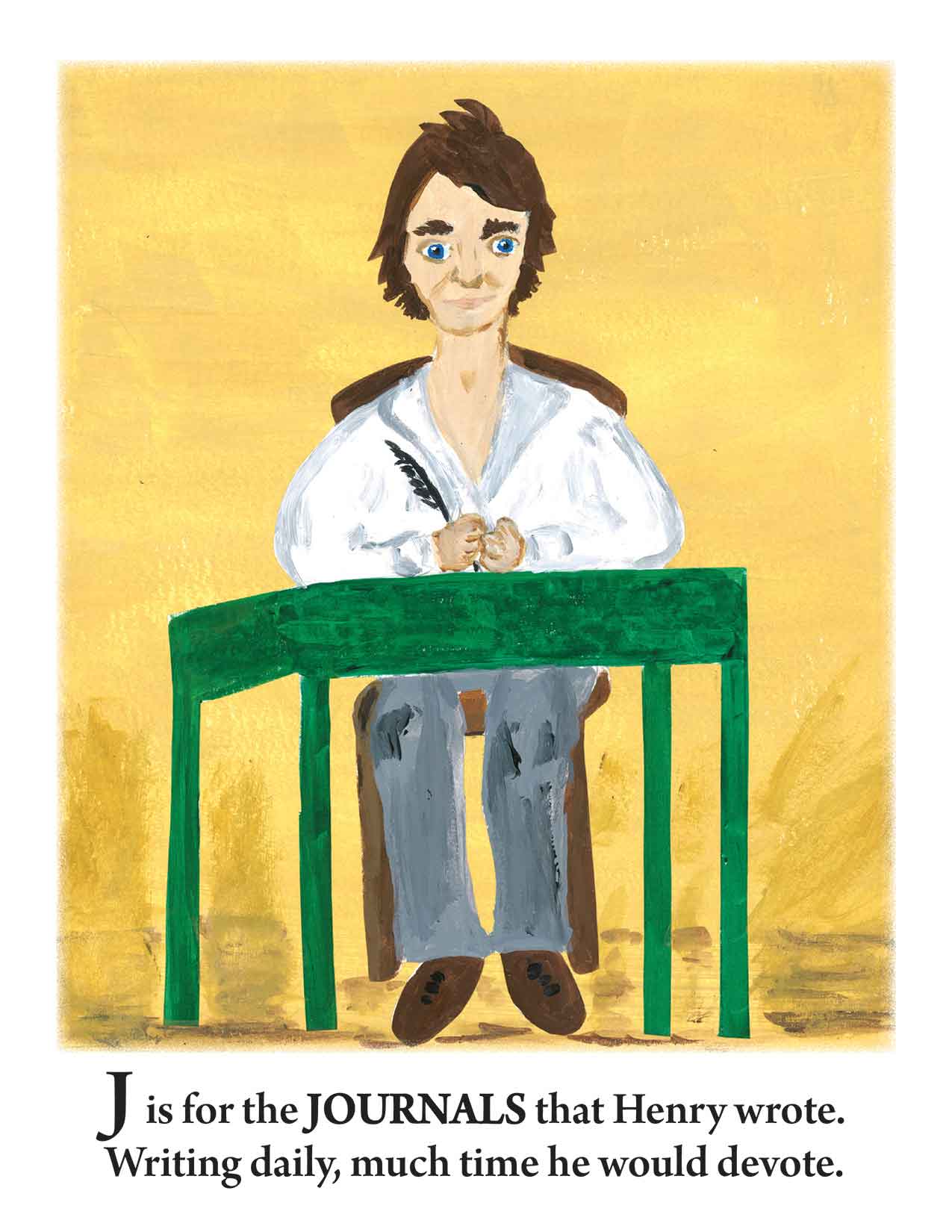 Henry David Thoreau, Who Can He Be? (2016) is an alphabet book for Preschool through Grade 3. Donna Marie used biographical details to introduce Henry as a nature lover, but also as a lover of good food and even, sometimes, good company. The book is written in rhymed verse (e.g., “P is for POPCORN Henry did make. The children enjoyed it better than cake”). Her illustrations are done in an exuberant style, reminiscent of folk art, with rich colors and bold brushstrokes. Parents and grandparents will recognize familiar images from Thoreau’s life, like his green desk that’s in the Concord Museum.