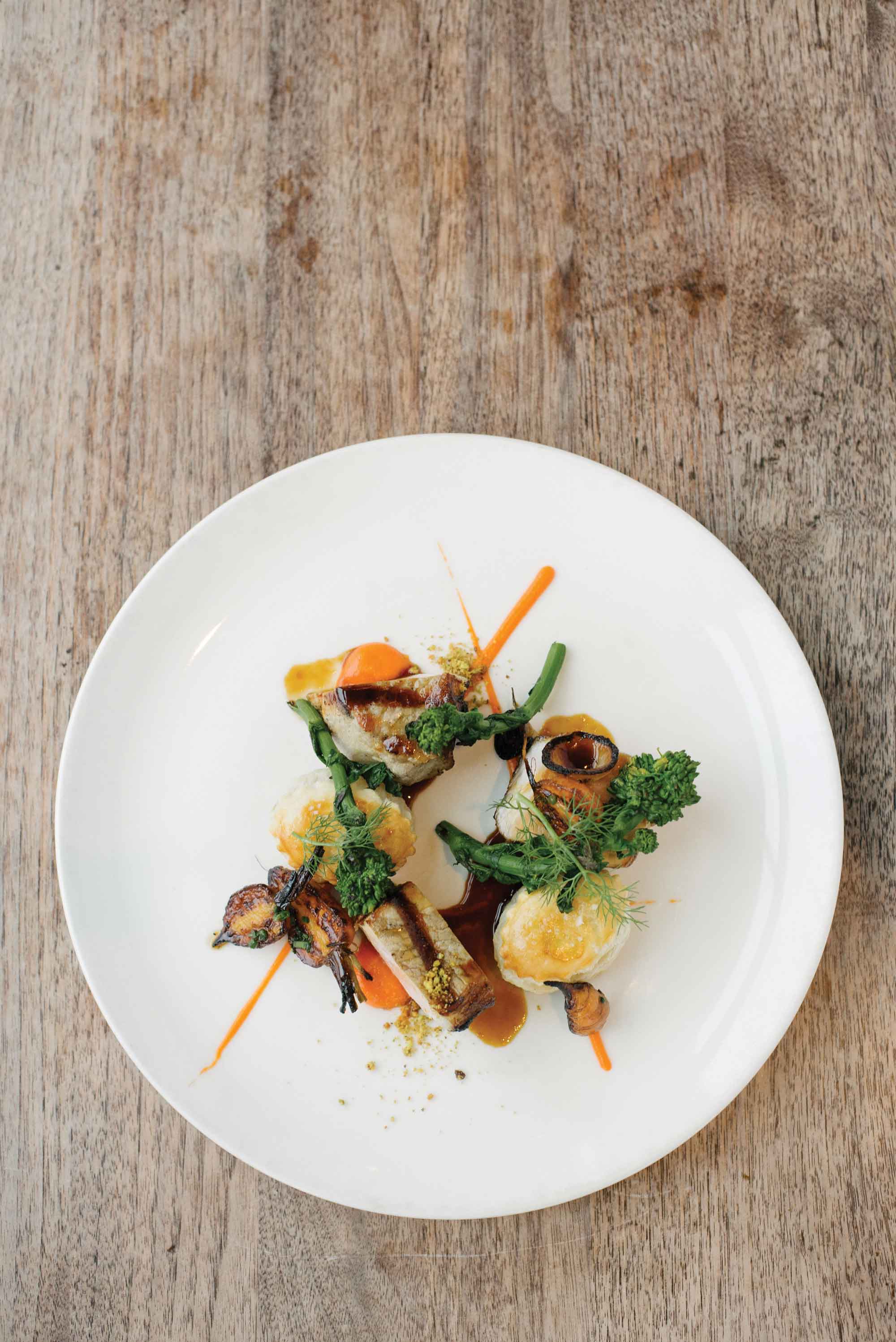 Woods Hill Table has received high marks since its opening in 2015. Visitors and locals alike flock to the relaxed fine dining atmosphere. The congenial atmosphere at the bar encourages new friendships, and a roaring fire on a chilly night combats even the fiercest of winter weather. Summertime brings fresh mint to custom cocktails and a celebration of fresh vegetables.
