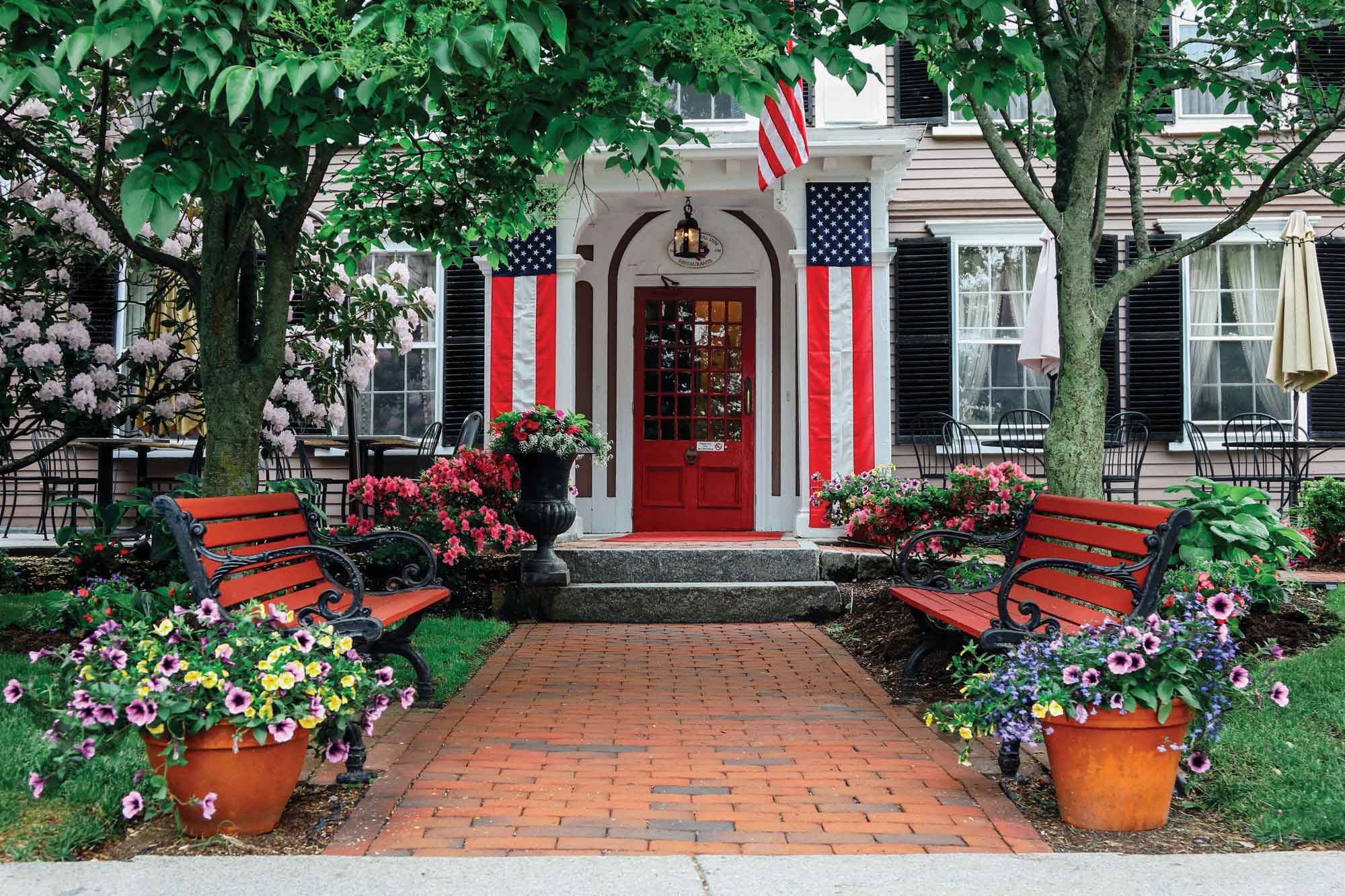 Surrounded all season by colorful flowers and lush plantings, it becomes the hub of activity at the 303-year-old Inn as the weather gets warmer. The porch serves the Inn’s full lunch and dinner menu, weather permitting, seven days per week, and offers a full liquor license as well. Even though the Inn is most known for its traditional American offerings like Chicken Pot Pie and Yankee Pot Roast, Seidel says the most popular fare among typical porch guests is a little different. “Definitely the Lobster Roll, the Cobb Salad, and the Quinoa Bowl,” he says when asked the top menu items in the summertime. As far as beverages go, the LaMarca Prosecco, the Lemon-Berry Sangria, and any one of a number of craft beer offerings from local breweries such as Wormtown, Nightshift, and Mayflower top the billing.