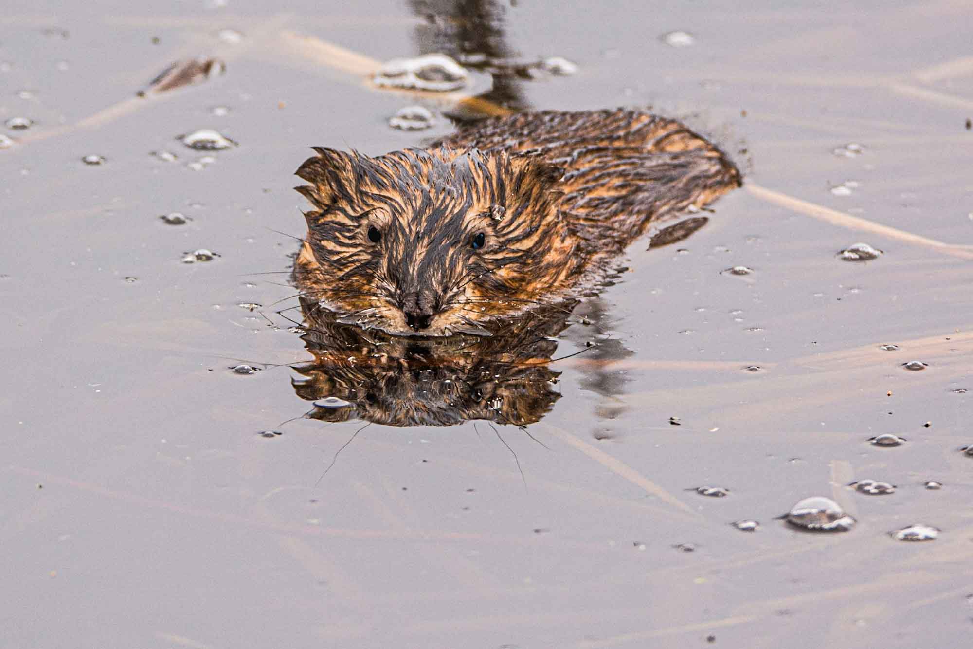 Along with the lovely colors of spring and the arrival of migratory birds come the blossoms of rhododendrons and the renewed activity of animals—muskrats going about their business, and new families appearing, including swans and their cygnets.