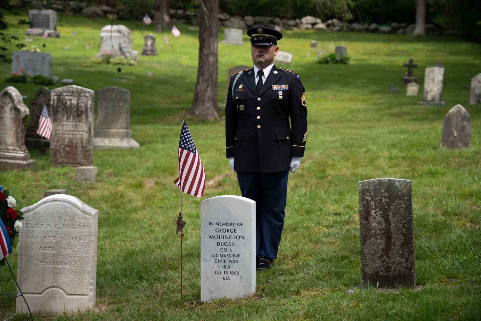 Dubbed “GLORY for George,” this celebration engaged visitors and locals alike to honor the legacy of George Washington Dugan on the 160th anniversary of his heroic sacrifice as a member of the 54th Massachusetts, the first all-Black regiment of the Civil War.