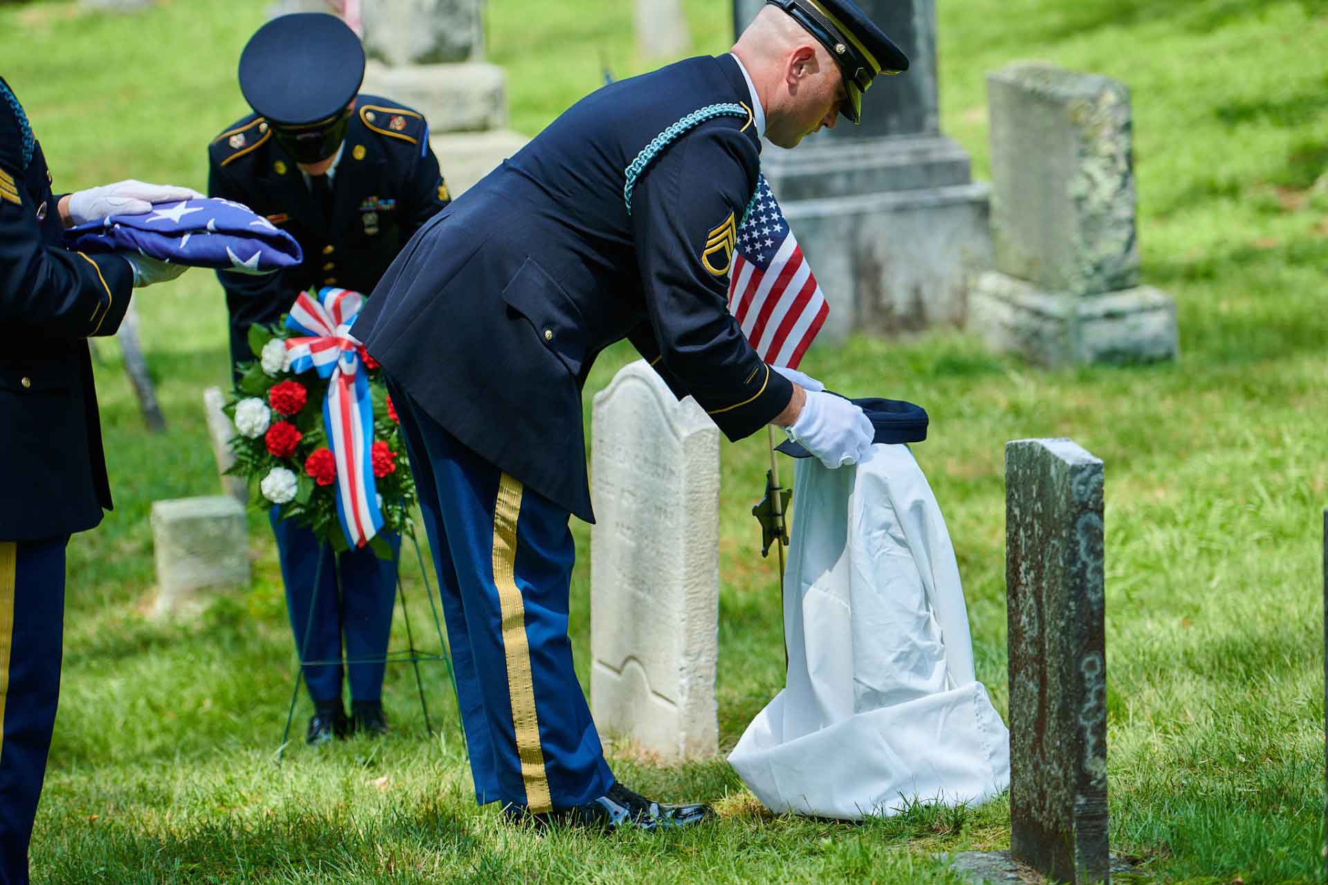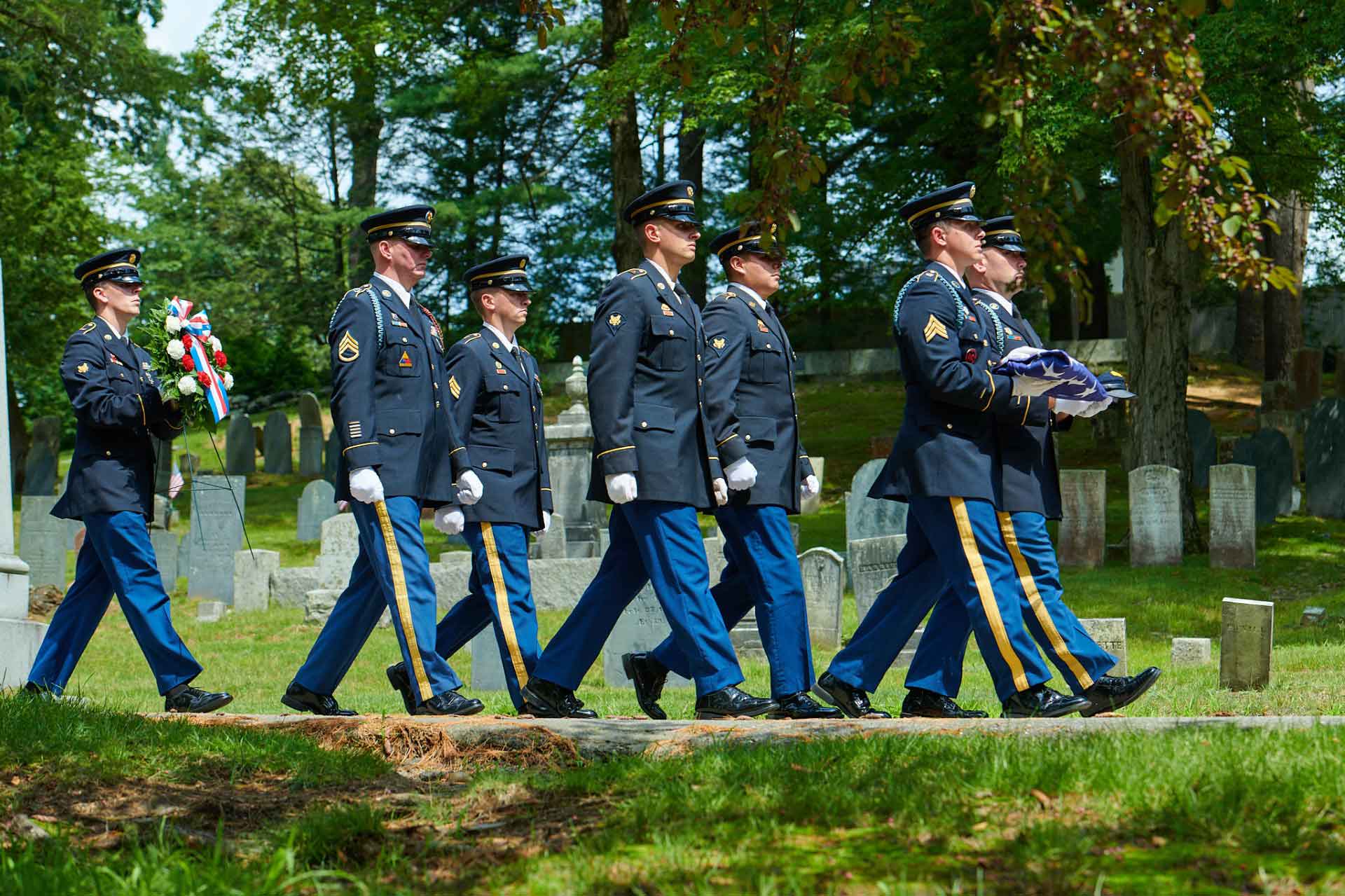 Even with this storied history behind it, Concord has never formally recognized its native son. George’s body was never recovered, and he was originally listed as “missing in action” rather than killed in battle. This technicality kept his name from being listed on the town’s Civil War Monument This omission was righted 160 years later, in an emotional ceremony and celebration that included citizens of the Town, visitors, and military units from across the country who joined in providing formal military honors for George with the placing of a cenotaph at Sleepy Hollow Cemetery.