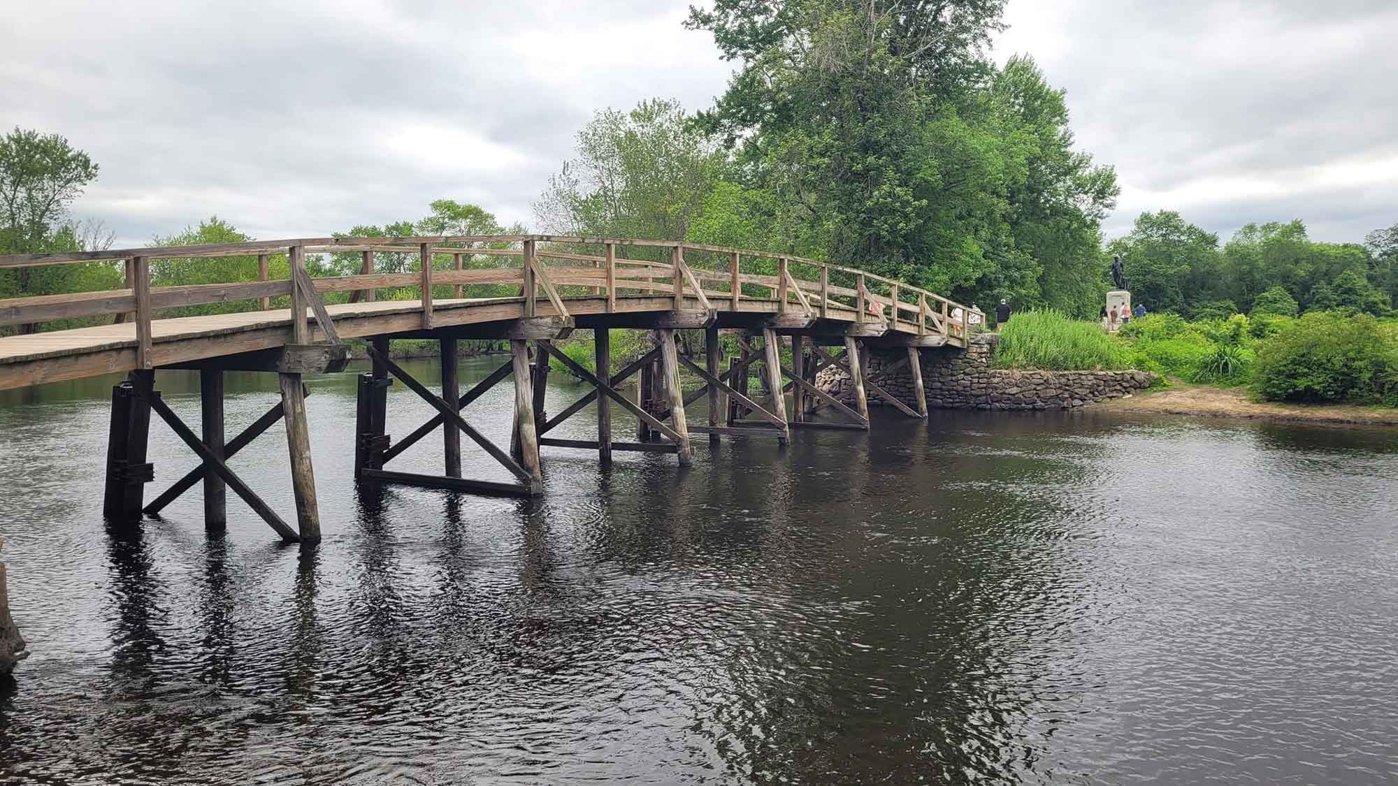 Stand in the middle of Concord’s North Bridge with the Minute Man statue on your right and the British soldiers’ grave on your left. Place your hands on the rough wooden handrail in front of you; slightly to the left, you will see The Old Manse through the trees. Peer down into the Concord River that Ralph Waldo called “the dark stream which seaward creeps” and brace yourself: this tale is about to get rough.