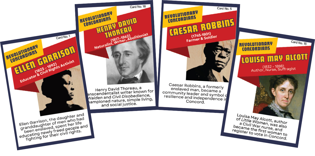 Revolutionary Concordian Trading Cards are an official Concord250 program developed by Thoreau Farm and supported by a 2025 Partnership Grant from Freedom’s Way National Heritage Area.